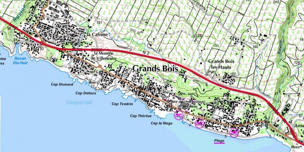 Le quartier se compose essentiellement d’une grande avenue (l’avenue du Général de Gaulle) et d’un chemin plus en hauteur. La Ravine des Cafres, petit quartier résidentiel en bord de mer où se côtoient résidences de standing et cases plus anciennes, constitue une entrée dans le centre de Grand-Bois parallèle à la route nationale.